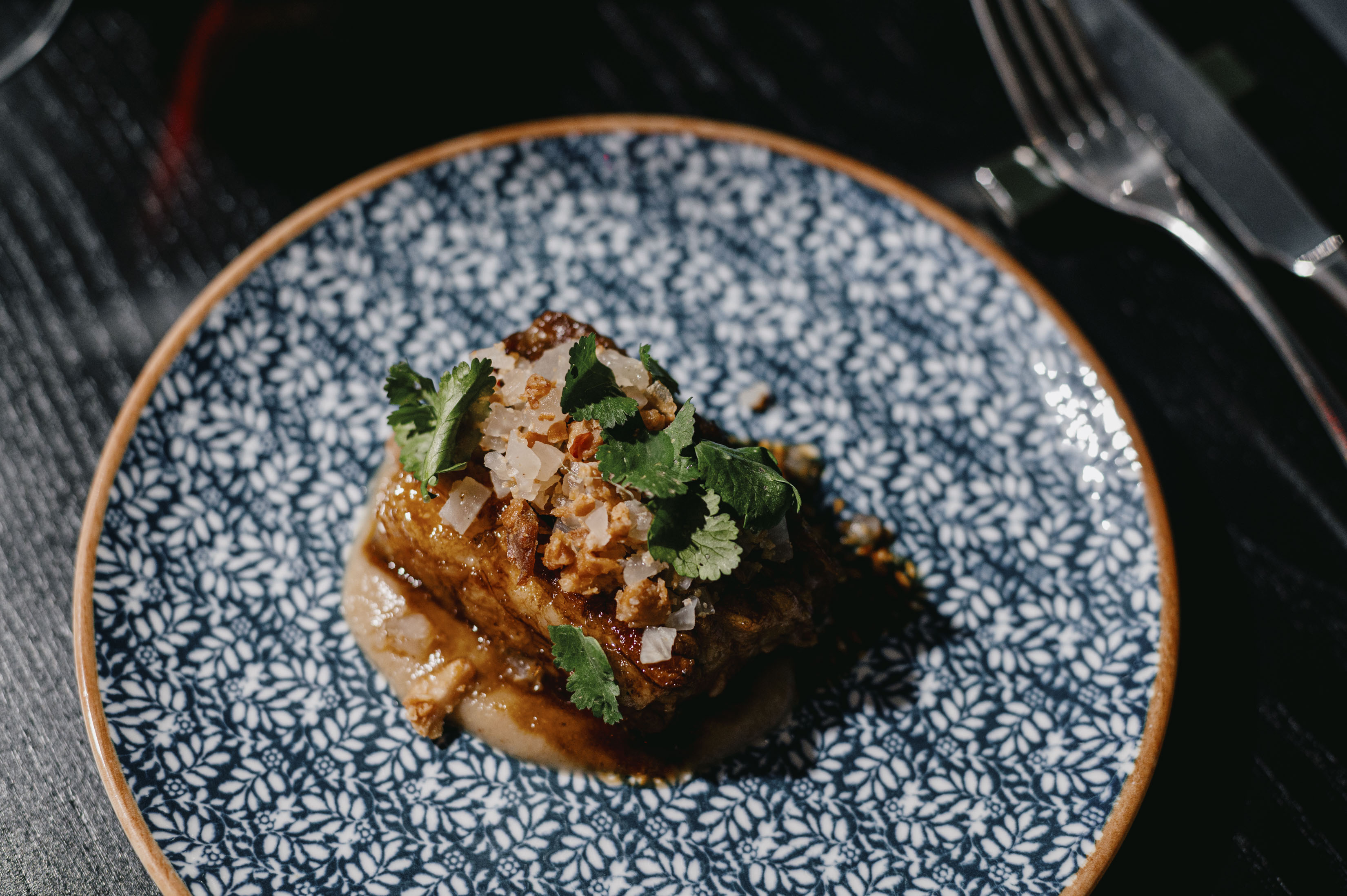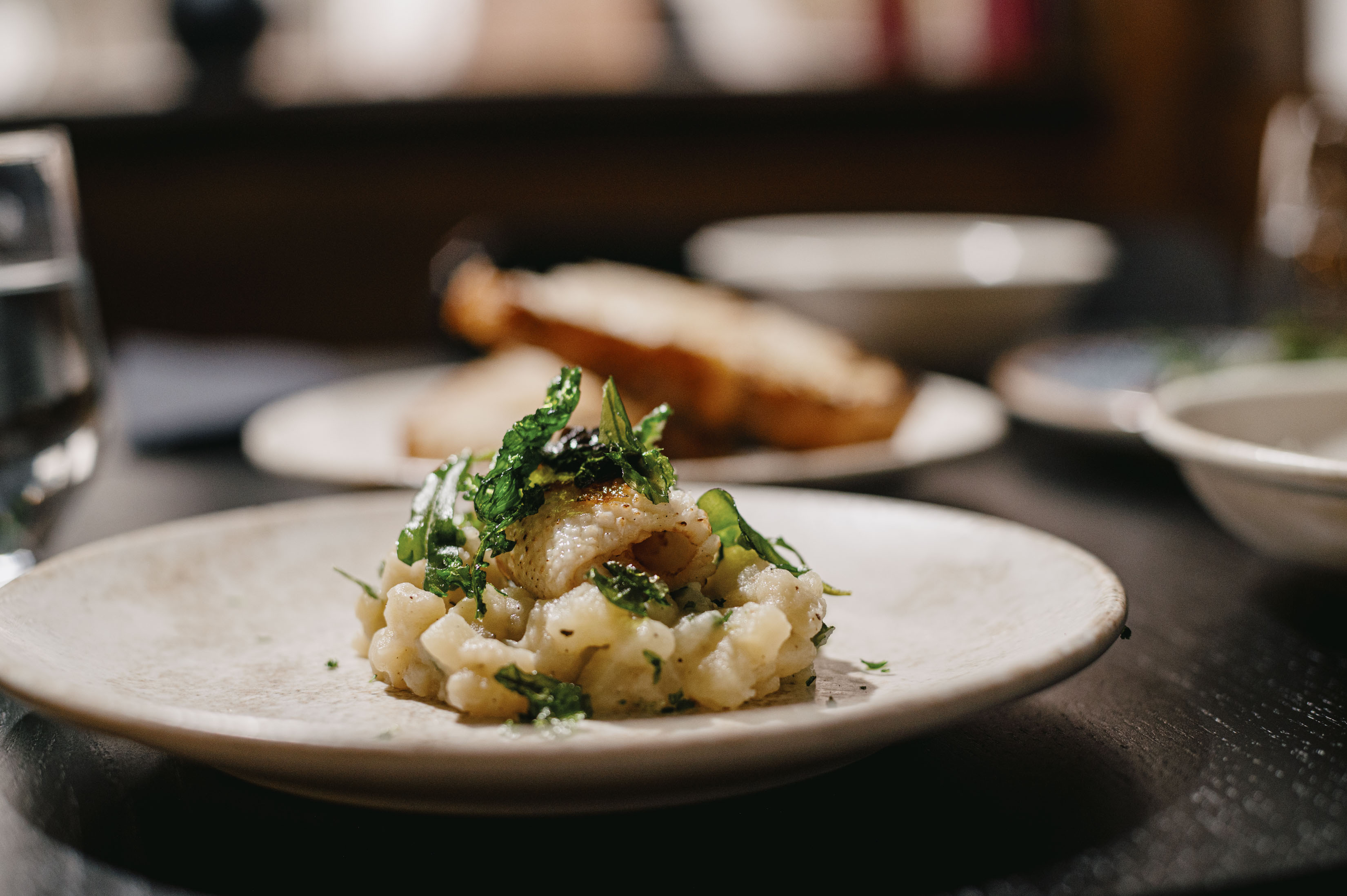 The second course featured a pumpkin dashi with charred kale leaves. The sweetness of the pumpkin brought warmth, while the grilled kale added a smoky note and textural contrast – a meeting point of Eastern precision and local, seasonal inspiration.